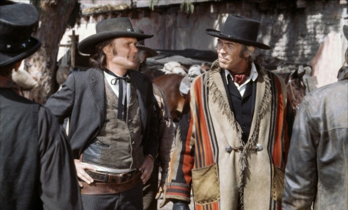 Westerns are one of the most male-dominated genres, which I’m sure is something you could get mad about it if you were so inclined, but which makes it an especially fruitful genre for exploring homosocial dynamics. Take Pat Garrett and Billy the Kid, Sam Peckinpah’s 1973 western. James Coburn plays Garrett, hired as a lawman to bring down his old partner, Billy (Kris Kristofferson, perhaps the actor who belongs most perfectly in westerns). Bob Dylan appears in a supporting role – there’s a really funny scene where he just reads labels off jars for ages – as well as contributing to the soundtrack, and it works so perfectly that it makes you wonder how they made westerns for decades without Dylan soundtracks.