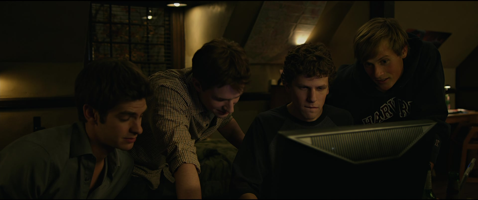 That’s my favourite thing anyone has ever said about The Social Network, for the record. It is the Citizen Kane of John Hughes movies. There are visual references to Citizen Kane, like the shot of the algorithm written on the window, and its structure is indebted to Kane’s: the depositions parallel the journalist’s investigation into Kane that structures the film, revealing the facts – or some version of them – but only offering impressions of Mark’s internal life. Like Citizen Kane, it tells a story about America through one man in it, about wealth and power and what principles we’re willing to shed, about lost innocence. But it does that in a form that’s within the tradition of John Hughes’s 1980s teen movies. The Social Network, is, more than anything, the story of a man in his mid-twenties being confronted by the most heinous shit he did when he was nineteen. When I watched it as a sixteen-year-old a decade ago, The Social Network seemed like a film about grown-ups, but now they seem – in the main timeline of the movie, certainly – terribly young. With the exception of Sean, they’re teenagers or maybe just a hair older. They spend most of their time in a dorm room and imagine that college society bullshit matters. They worry out loud about getting carded when they buy alcohol. Of course they do dumb, thoughtless shit. It just so happens they’re doing dumb thoughtless shit in an extremely high stakes environment, because one of them invented a website that might make a lot of money one day.