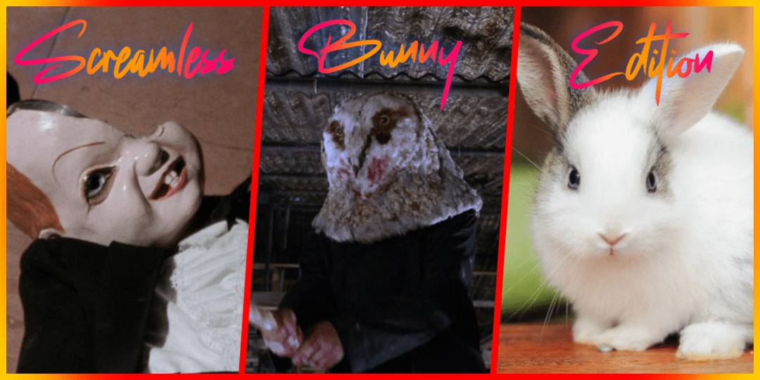 In the interests of listeners who don’t enjoy listening to screaming, we have released a version where screams, chainsaws and eyeball popping replaced with the soothing sound of bunny rabbits! The uncensored version is also available, but you can listen to the Screamless Bunny Edition here: